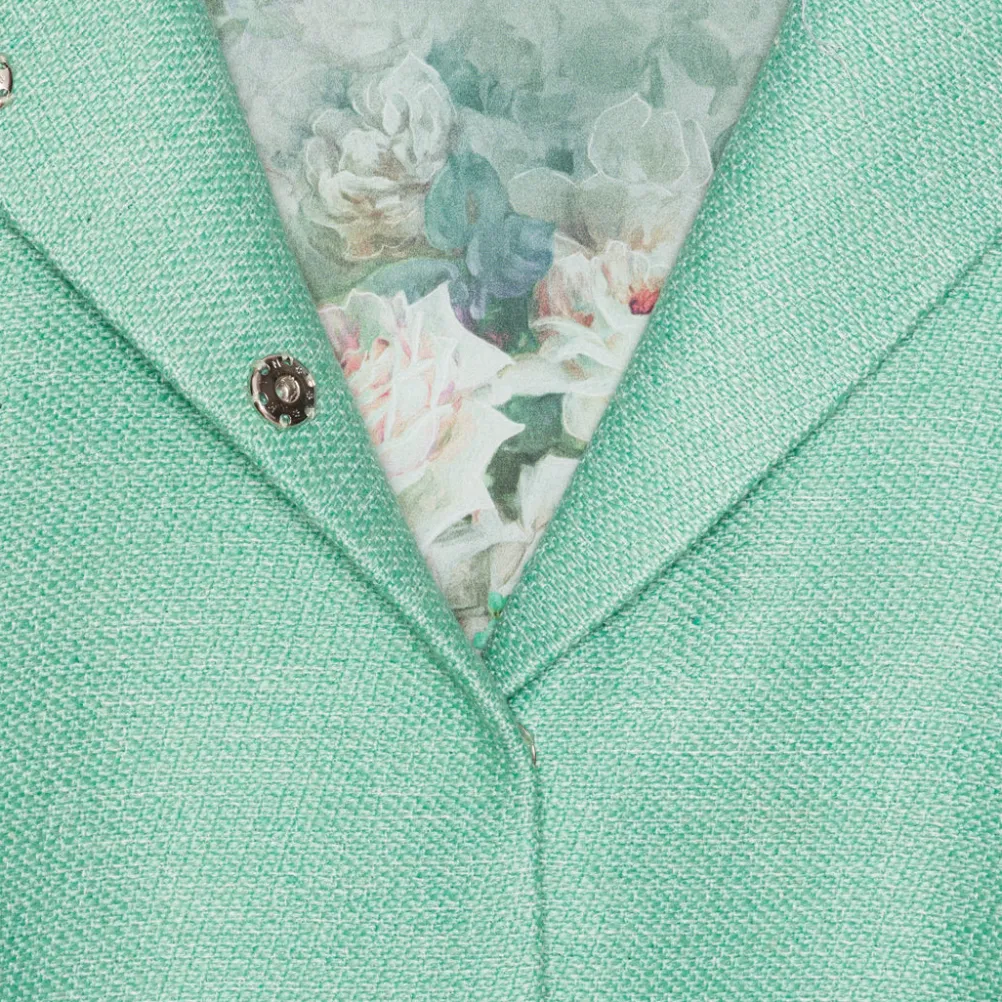 Elegant populær kort jakke fra Karmamia med peplum ærmer og knapluking. Med smukt satinfoer. Limited edition. One Size.