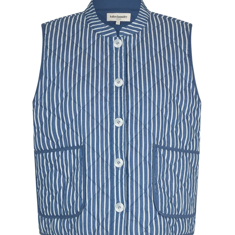 Flot stribet quiltet vest fra Lollys Laundry. Vesten har lommer foran og lukkes med knapper.