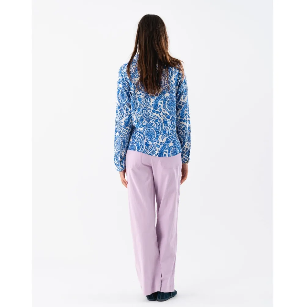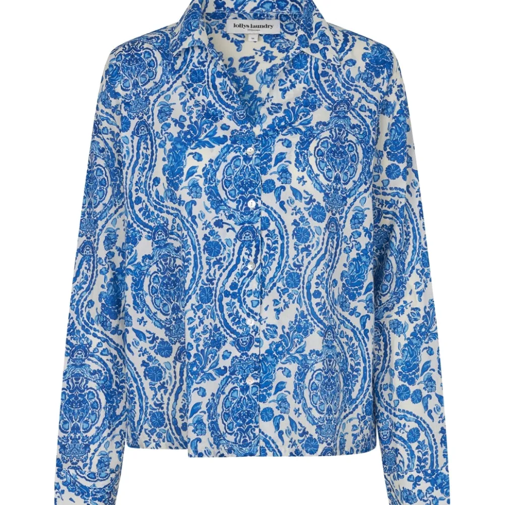 Flot mønstret skjorte fra Lollys Laundry i flot blå farve. Med klassisk krave, lille v-udskæring og knaplukning.
