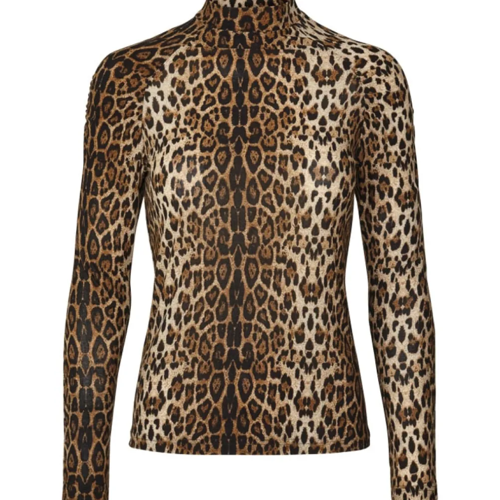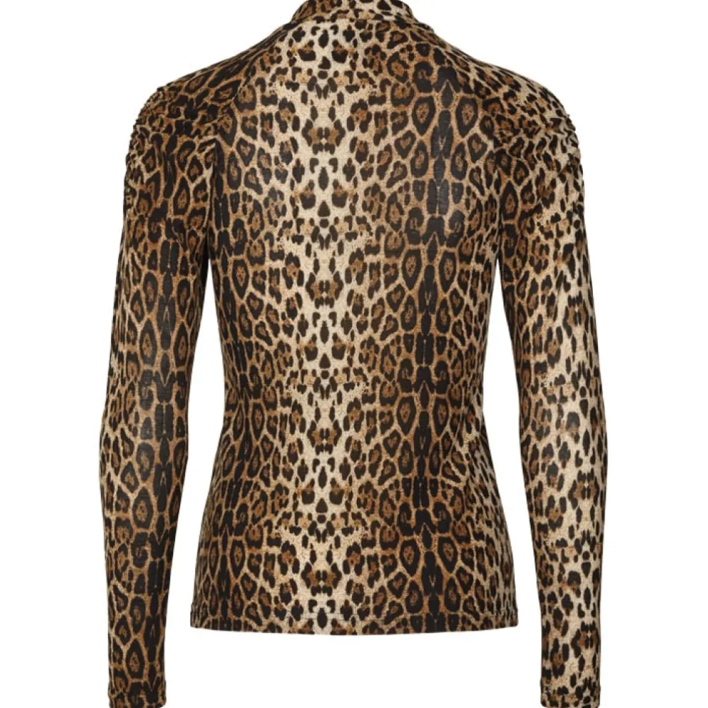 Flot tætsiddende bluse fra Lollys Laundry med leopardprint. Med høj hals og lange ærmer.