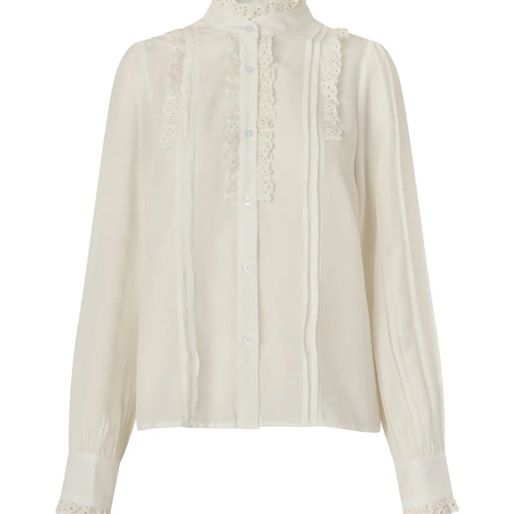 Smuk og elegant skjorte med fine detaljer fra Lollys Laundry. Med fine flæser og blondebånd. Perfekt til både hverdag og fest.