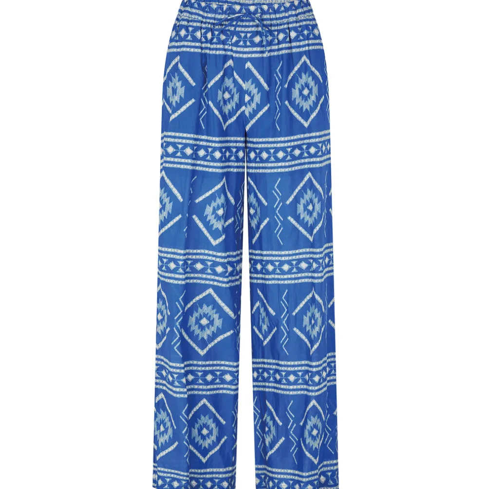 Super smukke lange løse bukser med det fineste boho-mønster fra Lollys Laundry. Med elastik og bindebånd i taljen. Meget behagelige at have på.