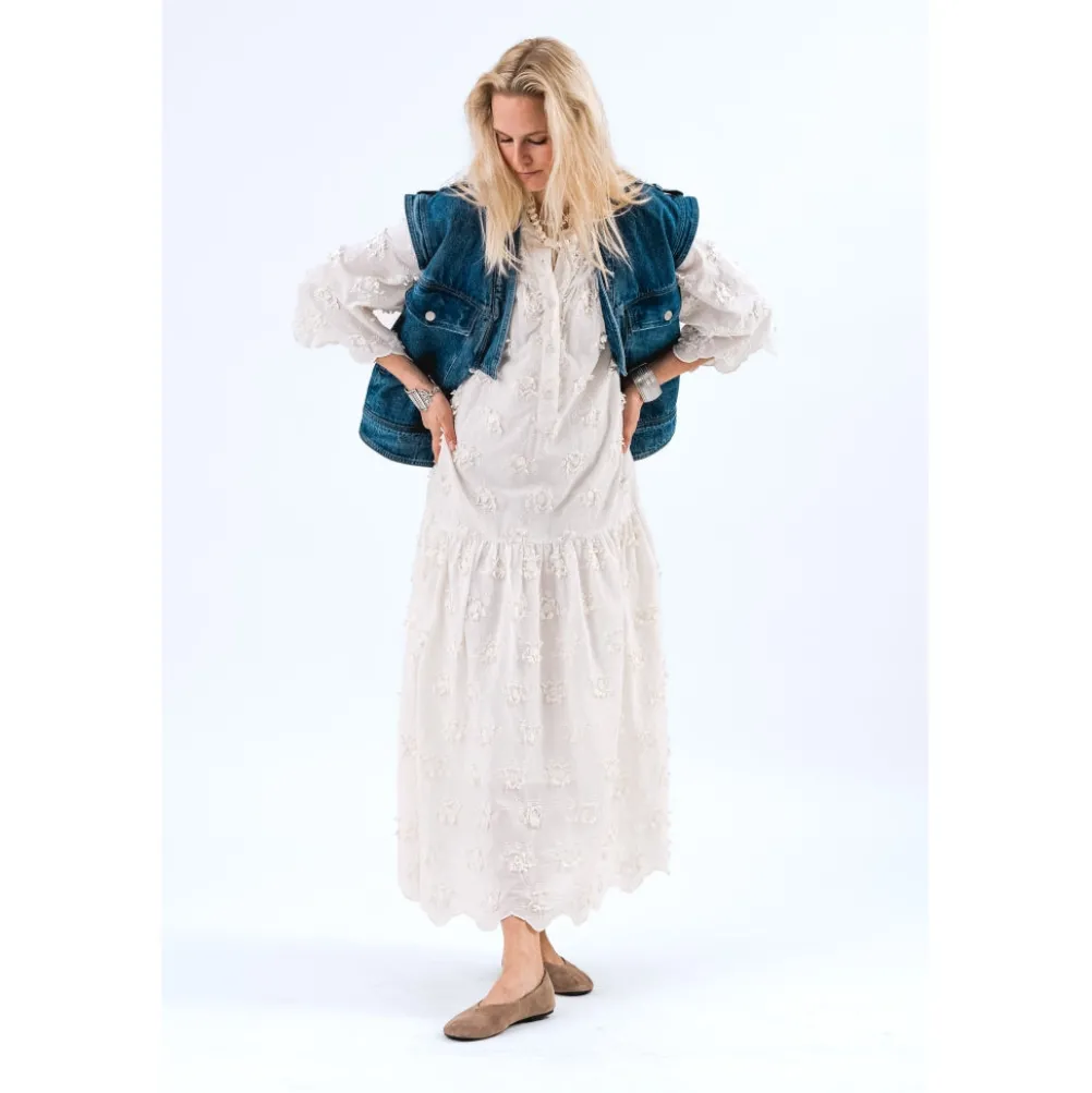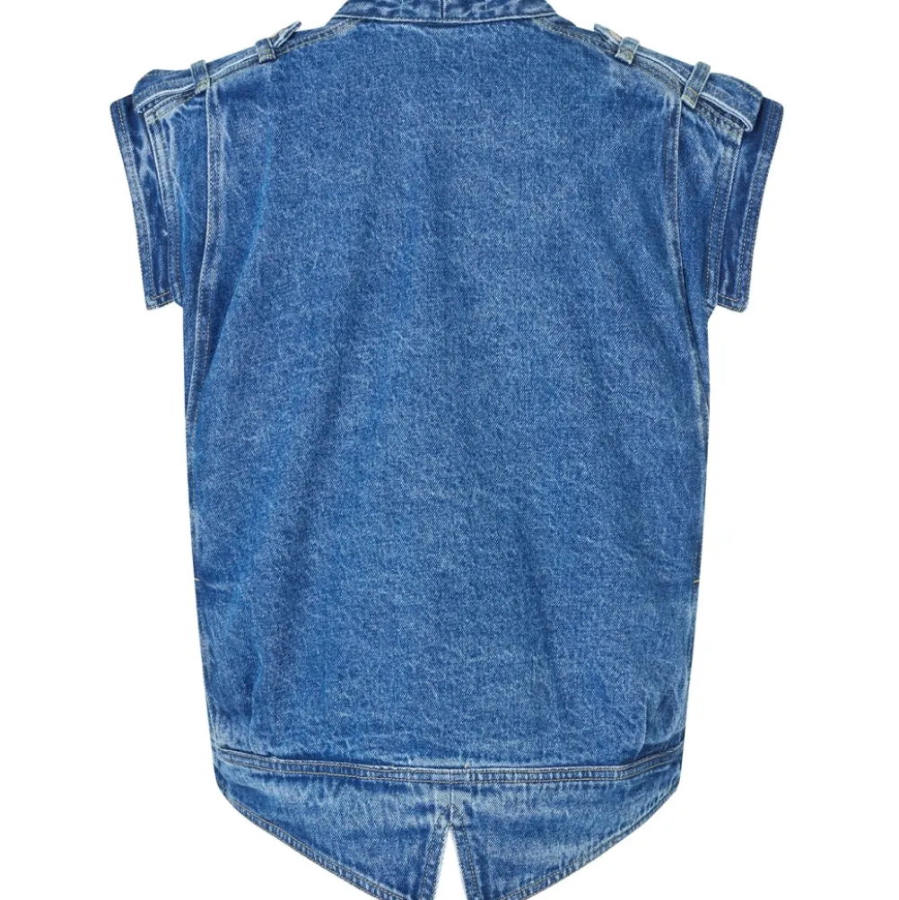 Cool klassisk denimvest fra Lollys Laundry med fine detaljer! Med asymetrisk lukning og store brystlommer. Med v-formet slids bagpå.