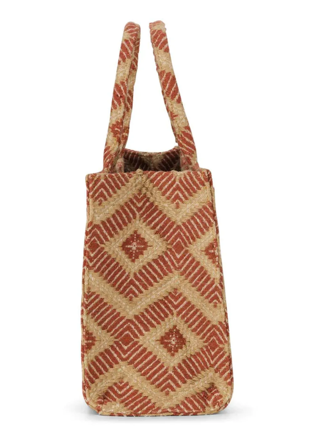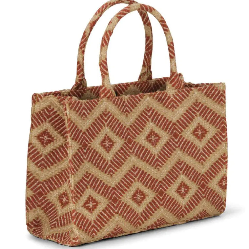 Flot stor taske med fint mønster fra Luna Moon lavet i bæredygtige naturprodukter. Tasken har tre lommer, hvor den ene lukkes med lynlås. Perfekt som strandtaske eller shopper.