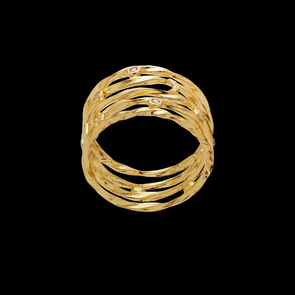 Smuk spiralformet ring fra Maanesten med små måner og zirkoniasten.