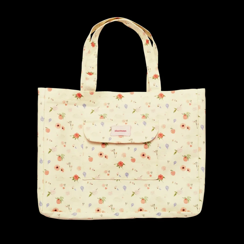 Smuk canvastaske med roser og muslinger fra Maanesten i 100 % bomuld.