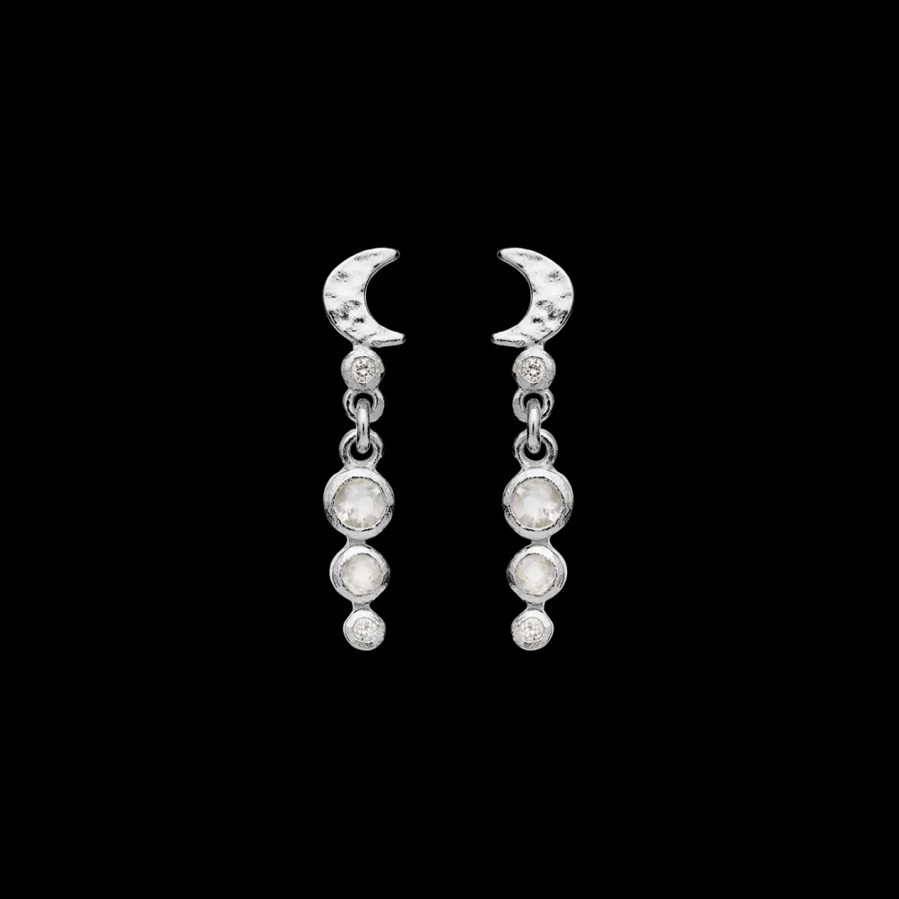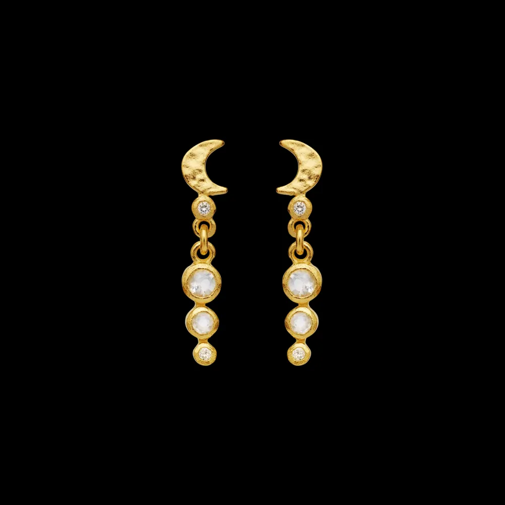 Smukke øreringe med månesten og zirkonia-vedhæng fra Maanesten. Fås både i guld og sølv.