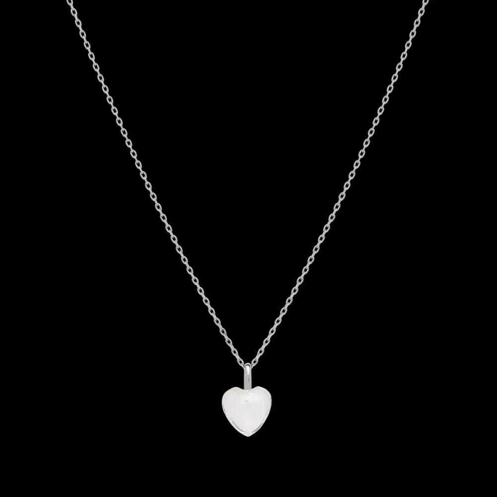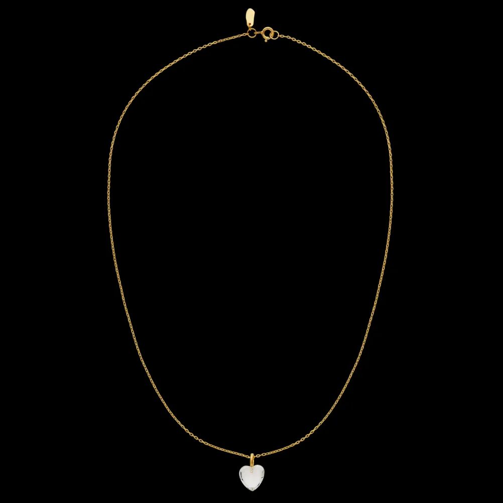 Smuk halskæde med krystalhjerte-vedhæng fra Maanesten. Fås både i guld og sølv.
