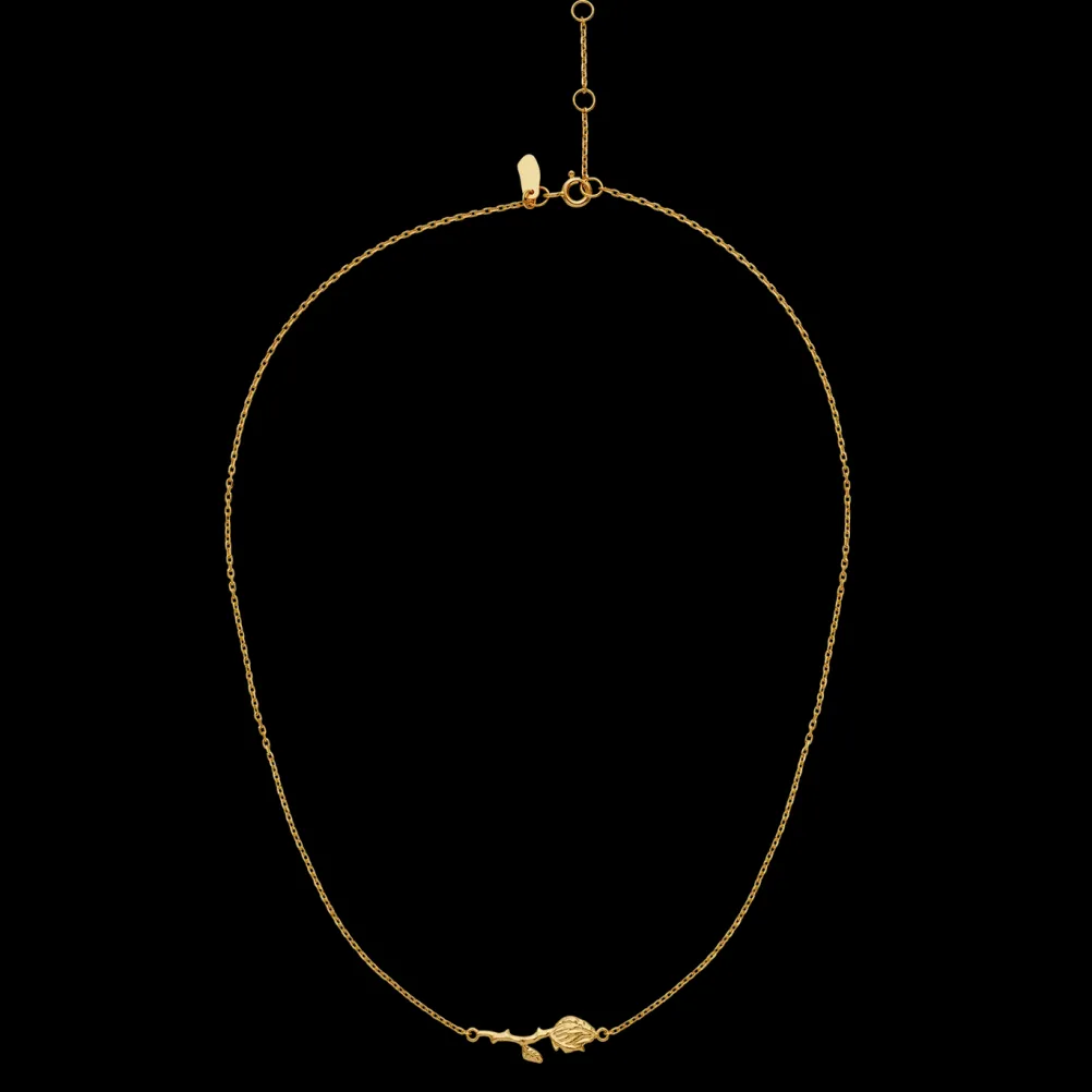 Smuk halskæde med rose-vedhæng fra Maanesten. Fås både i guld og sølv.