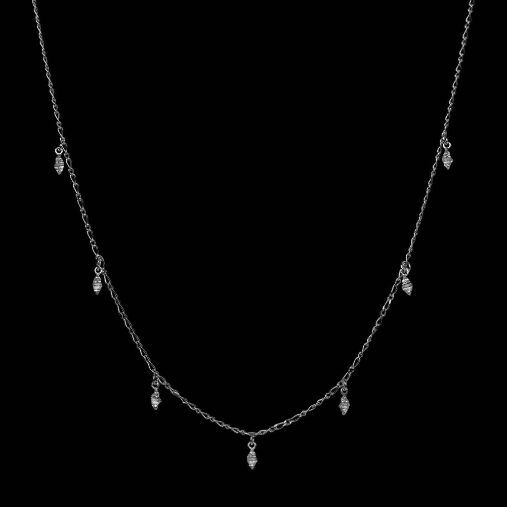 Smuk halskæde med fine små vedhæng fra Maanesten. Fås både i guld og sølv.