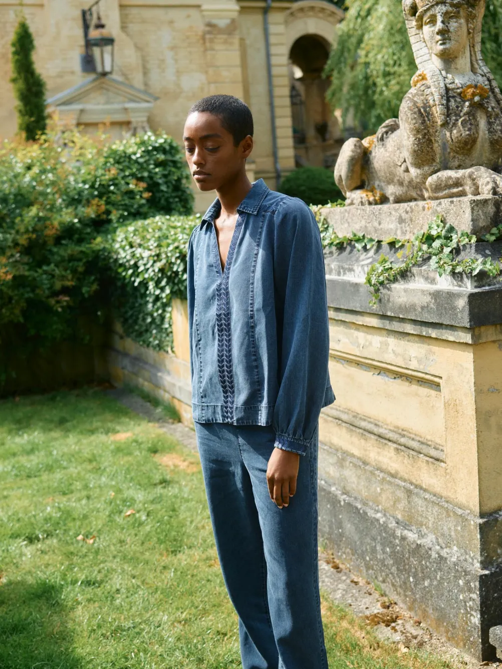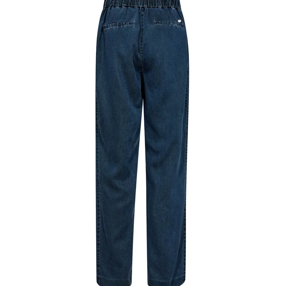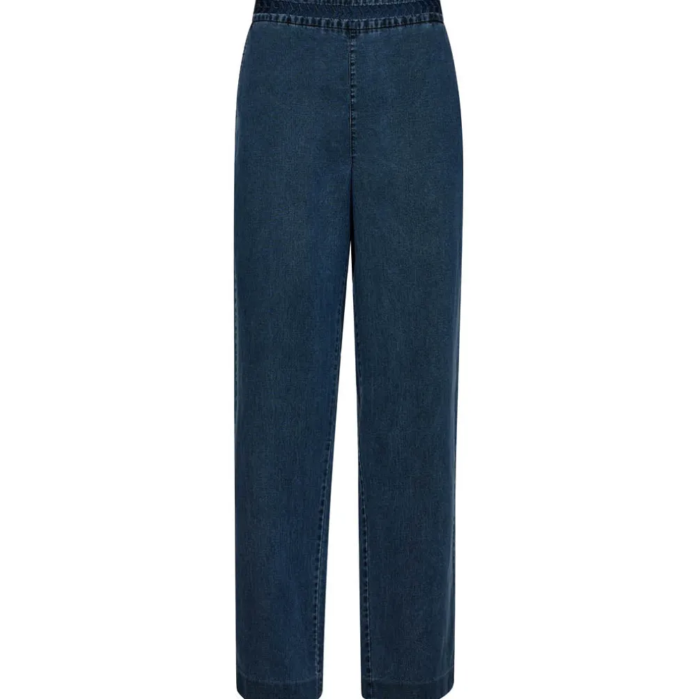 Skønne mørkeblå boheme-inspirerede denimbukser fra Mos Mosh. Med elastik i taljen. Kan med fordel styles med den matchende bluse.