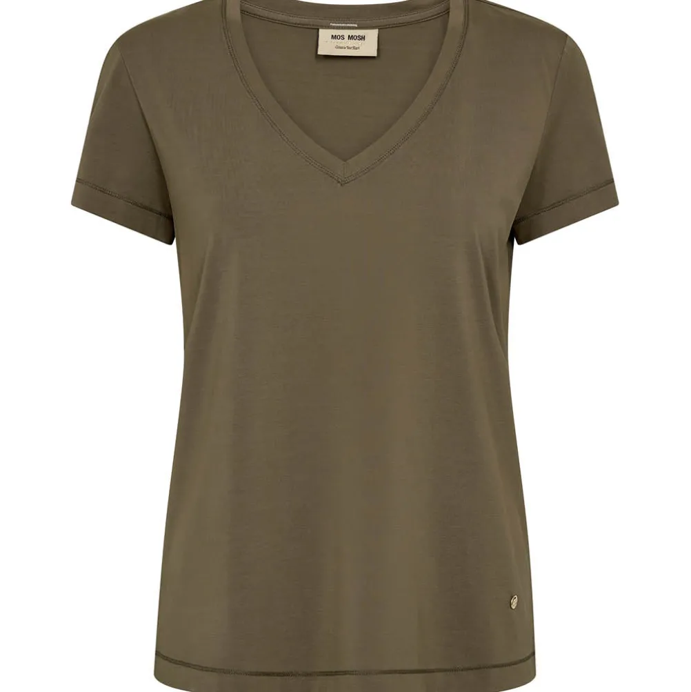 Fin basic t-shirt fra Mosh Mosh med v-udskæring og dekorativt logo i nakken.