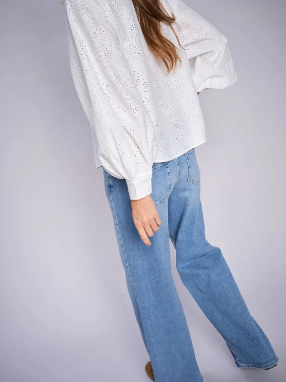 Flotte vintage-inspirerede jeans fra Mos Mosh lavet i en wide-leg-pasform med en flatterende høj talje og et klassisk 5-lomme-design.