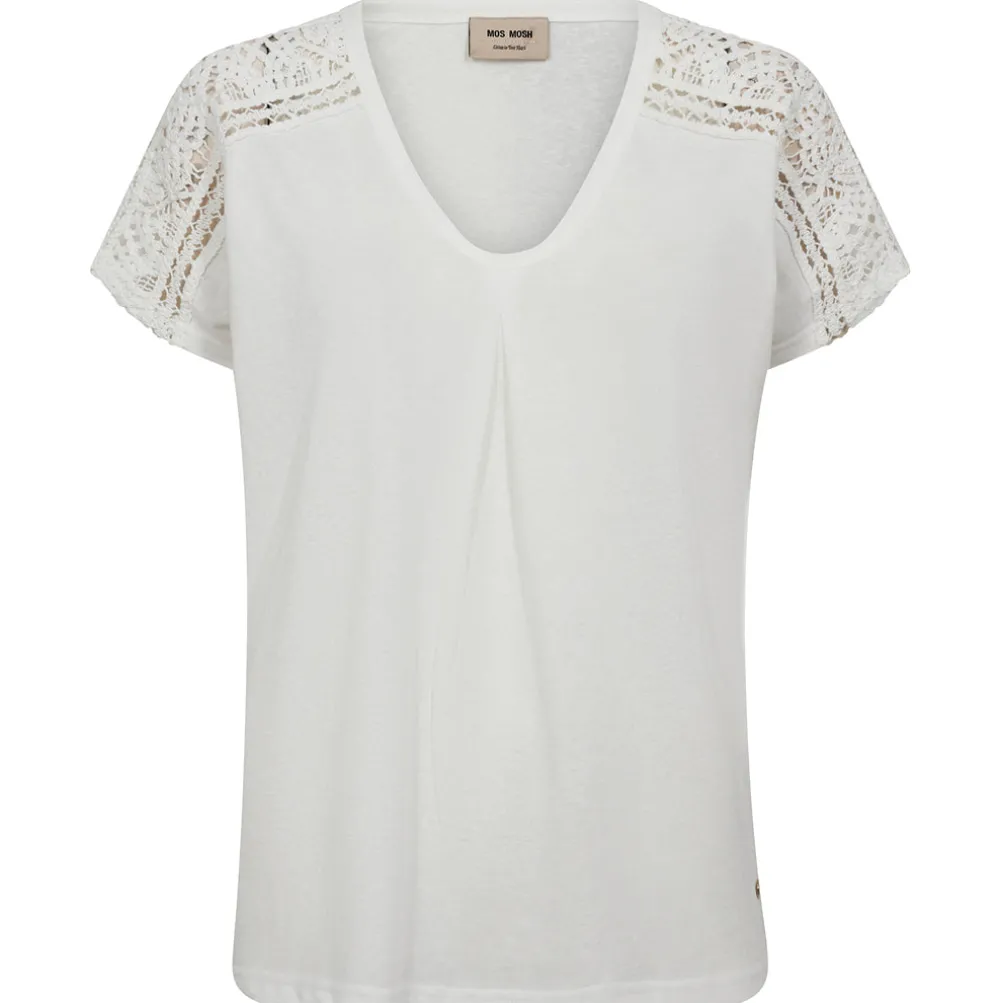 Flot t-shirt med fine blondedetaljer fra Mos Mosh med v-udskæring.