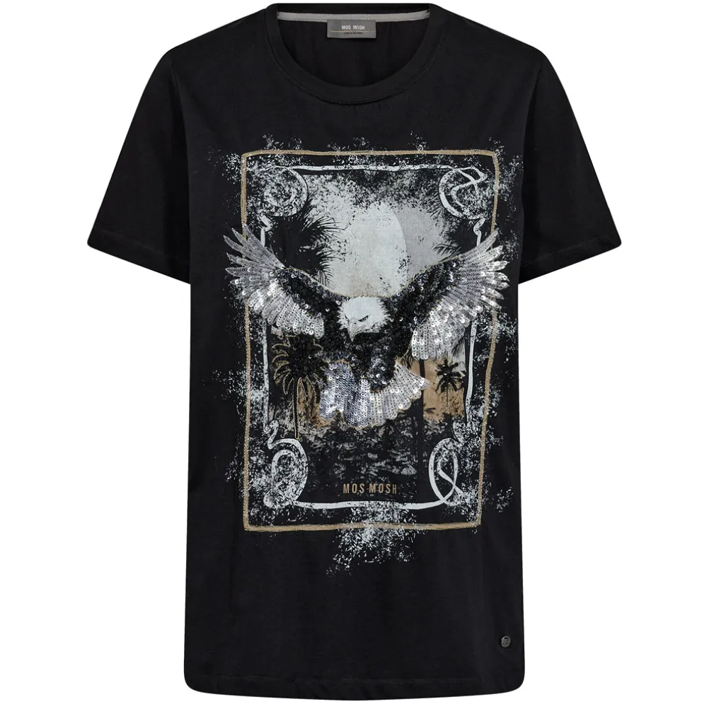 Cool-løs t-shirt med flot print fra Mos Mosh. Fremstillet i en lækker bomuld. Med rund hals og korte ærmer.