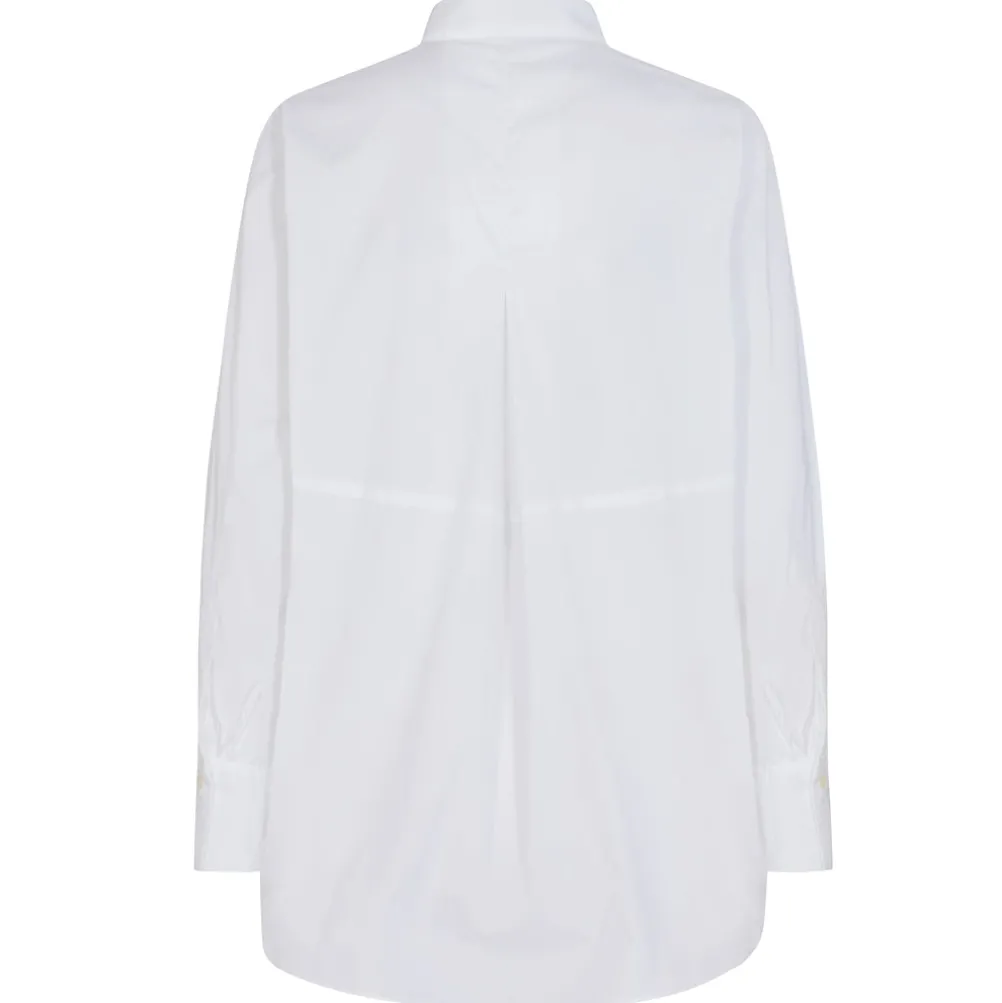 Lækker klassisk skjorte designet i en oversize pasform med skjult knaplukning og afrundet søm, som er lidt længere bagpå. Det grafiske snit ved skuldre og ryg, samt den cool plissering bagpå er med til at give skjorten et moderne twist.