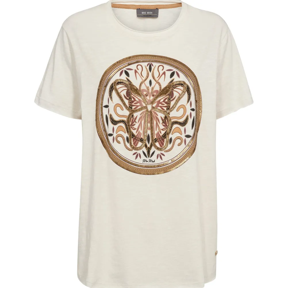 Cool-løs t-shirt med flot print fra Mos Mosh. Fremstillet i en lækker bomuld. Med rund hals og korte ærmer.
