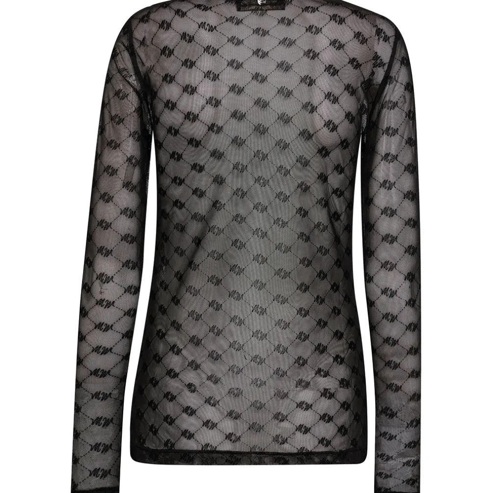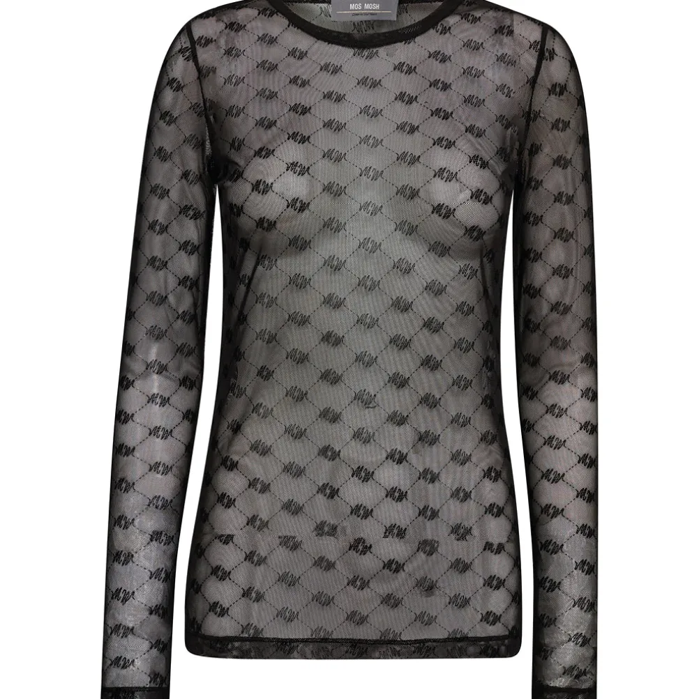 Flot gennemsigtig mesh-bluse med fint mønster fra Mos Mosh. Perfekt til både hverdag og fest.