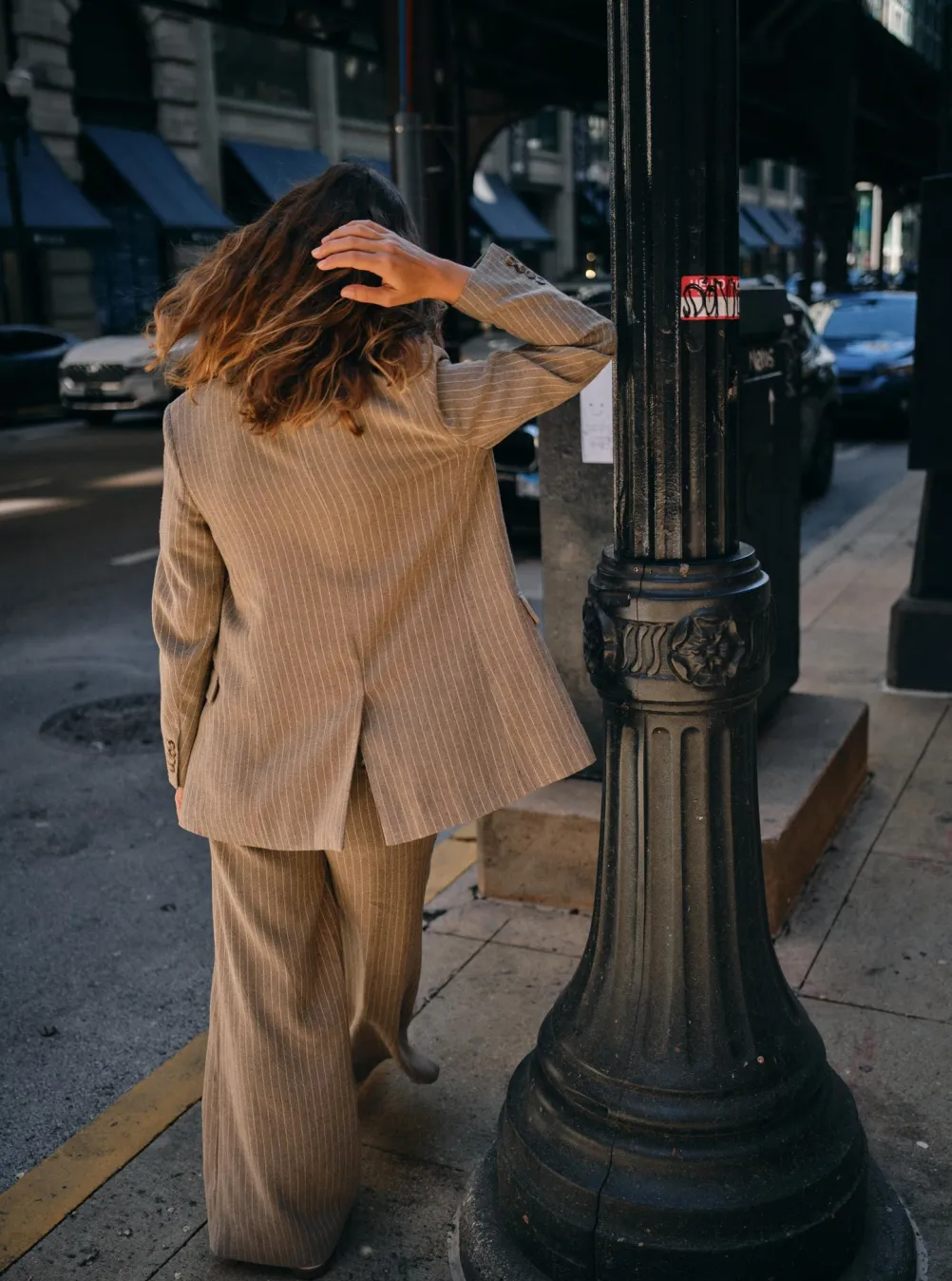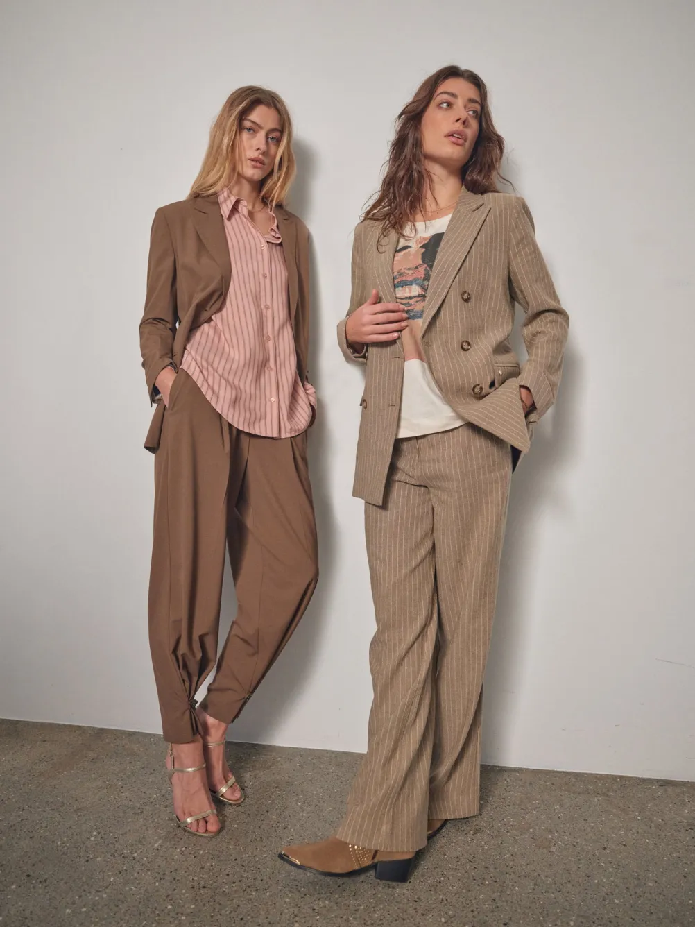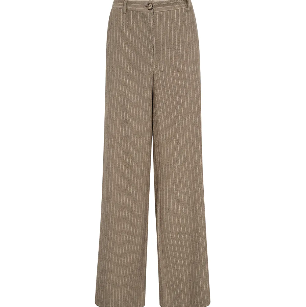 Flotte stribede klassiske bukser fra Mos Mosh. Med brede ben og høj talje. Med sidelommer, knaplukning og bæltestropper.