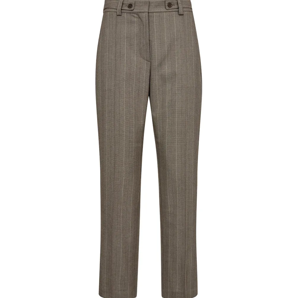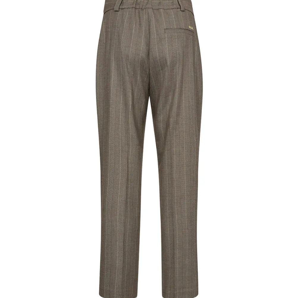 Flotte klassiske bukser med lysegule nålestriber fra Mos Mosh. Med lige ben og middelhøj talje, samt lysegult broderi på baglommen. Kan styles som et sæt med den matchende blazer.