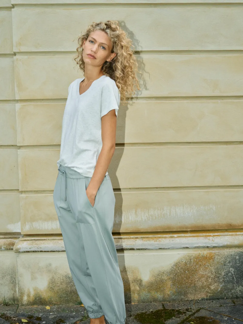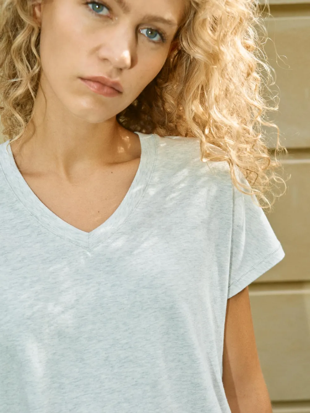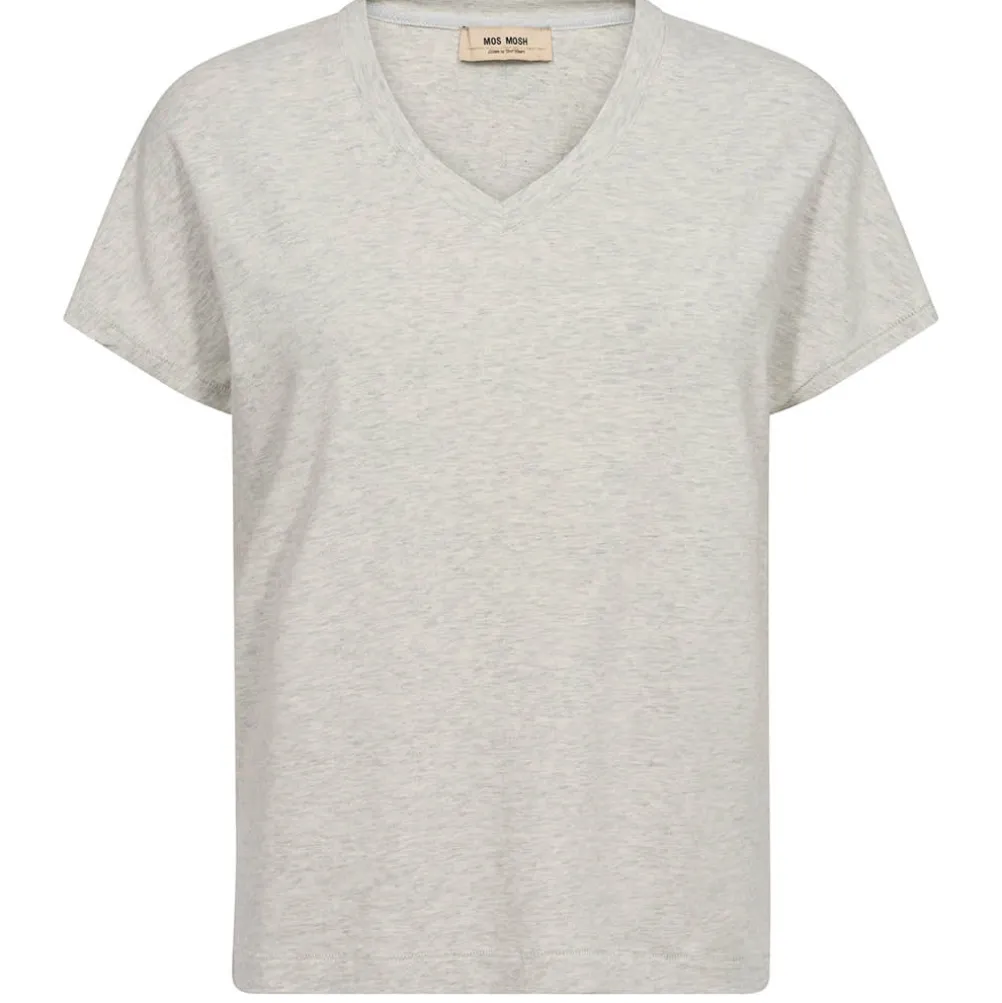 Fin basic t-shirt fra Mos Mosh designet i en afslappet pasform med v-hals. Meget blød og behagelig at have på.