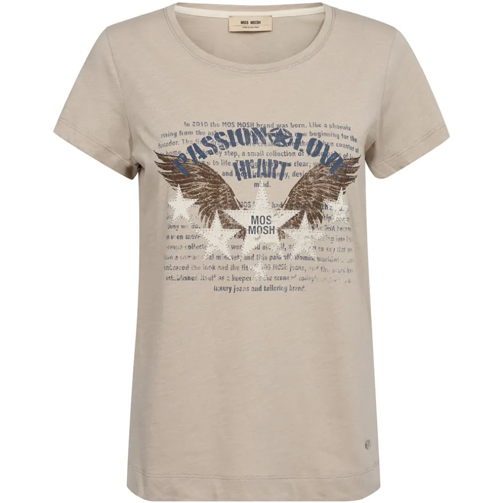 Cool-løs t-shirt med flot print fra Mos Mosh. Fremstillet i en lækker økologisk bomuld. Med rund hals og korte ærmer.