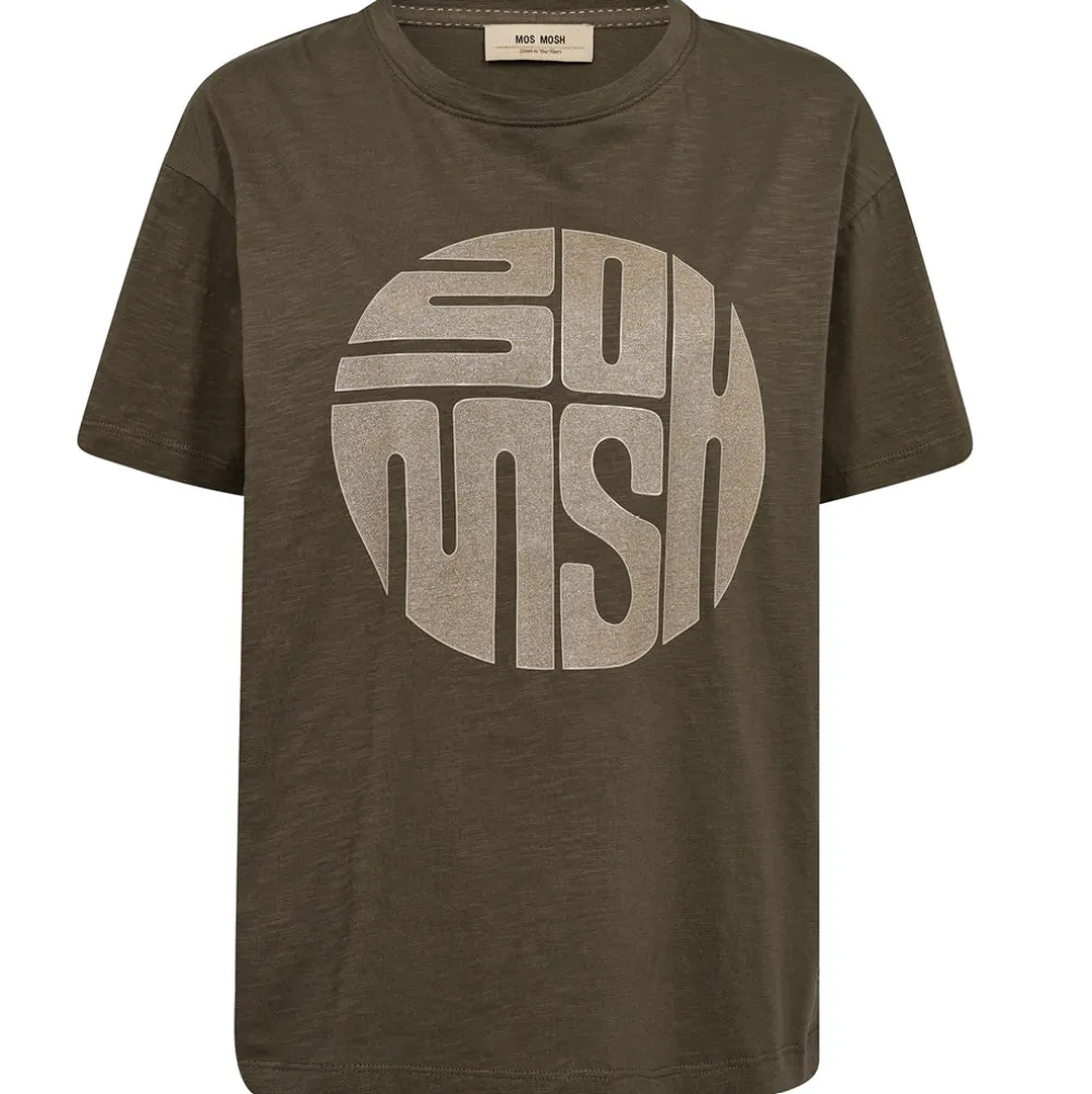 Cool-løs t-shirt med flot print fra Mos Mosh. Fremstillet i en lækker bomuld. Med rund hals og korte ærmer.