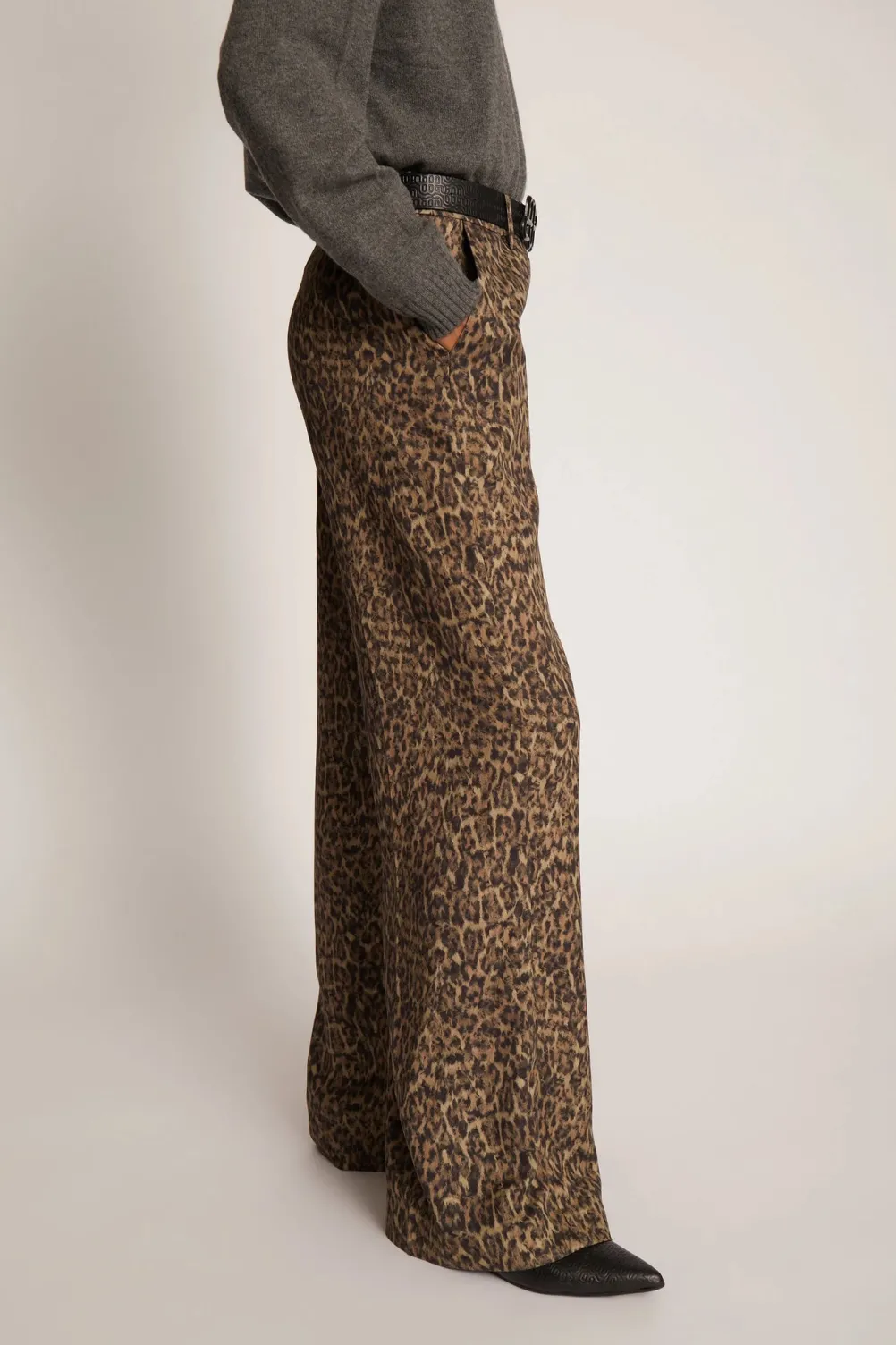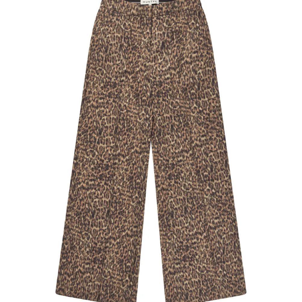 Smukke og elegante løse leopardbukser fra Munthe. Med lommer i siderne og bæltestropper. Kan styles både op og ned.