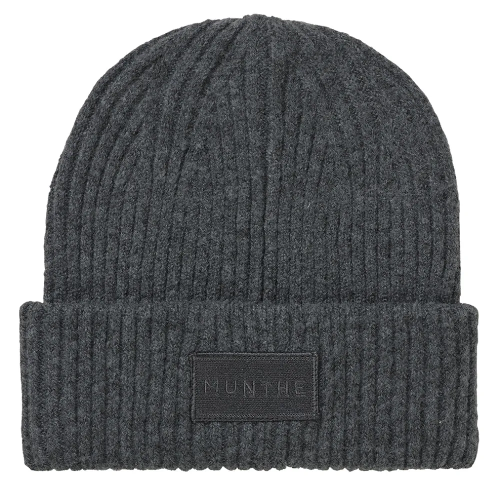 Lækker og blød populær ribstrikket hue i uldblanding med cool Munthe logo.