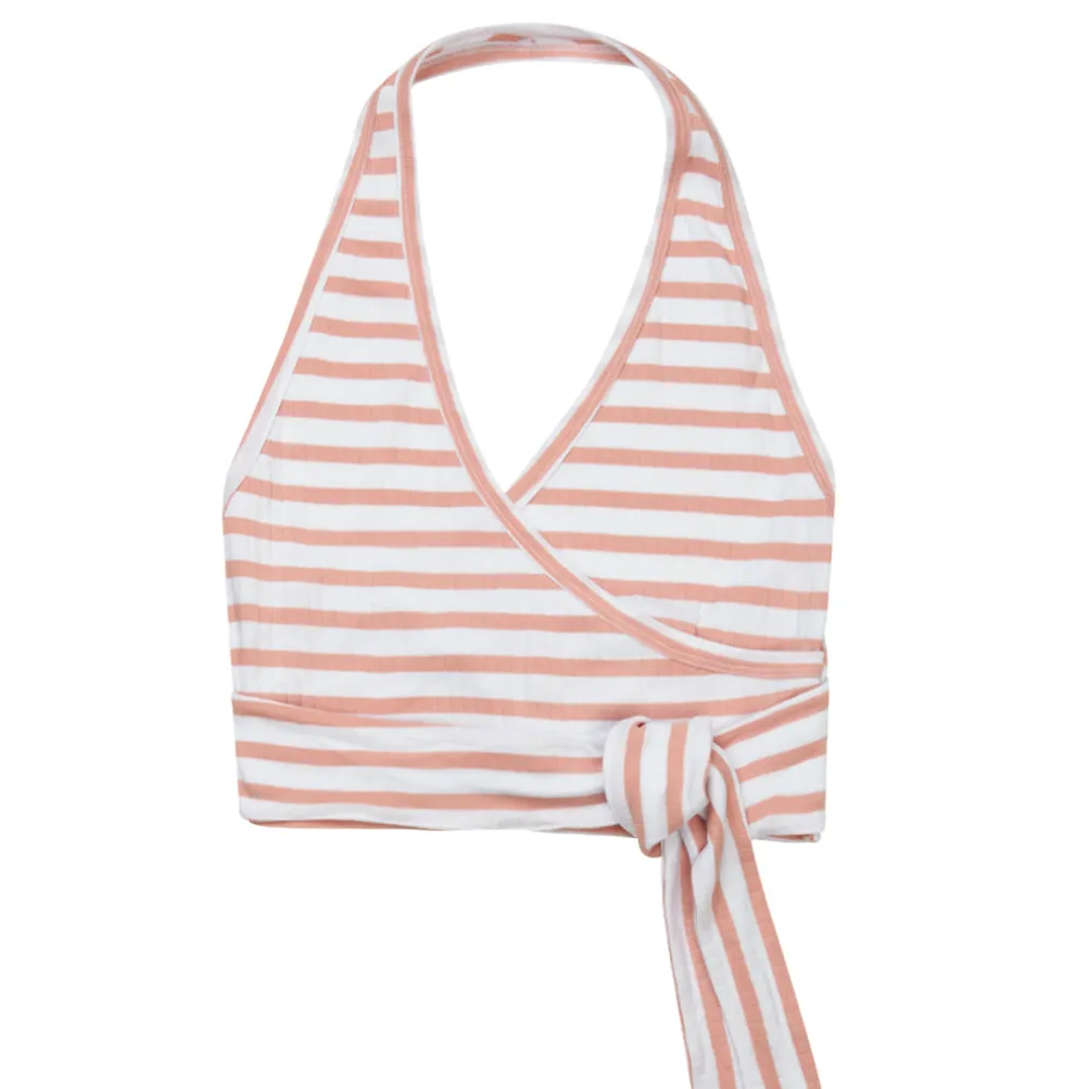 Fin stribet top fra Munthe i farven rose. Toppen har bindedetalje i taljen.
