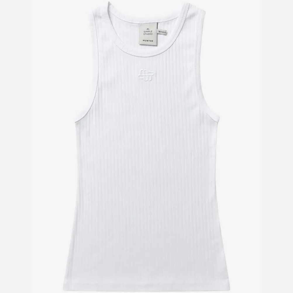 Flot og enkel top fra Munthe med fint emblem broderi på brystet. Med rund hals.