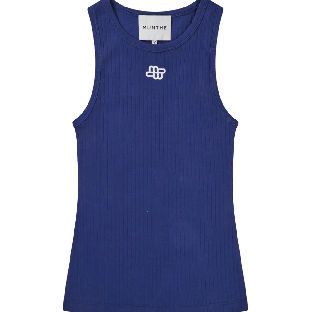 Flot og enkel top fra Munthe med fint emblem broderi på brystet. Med rund hals.