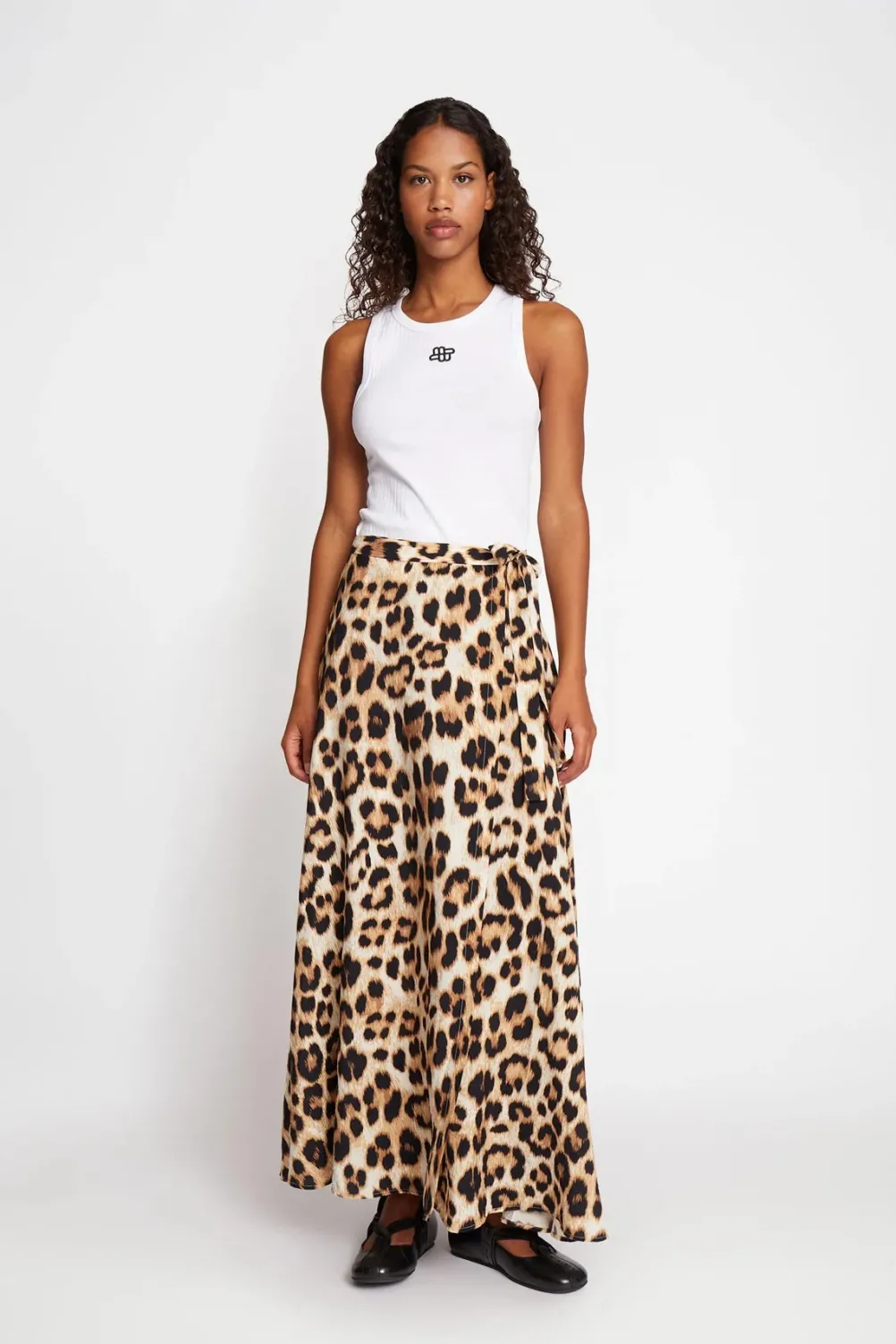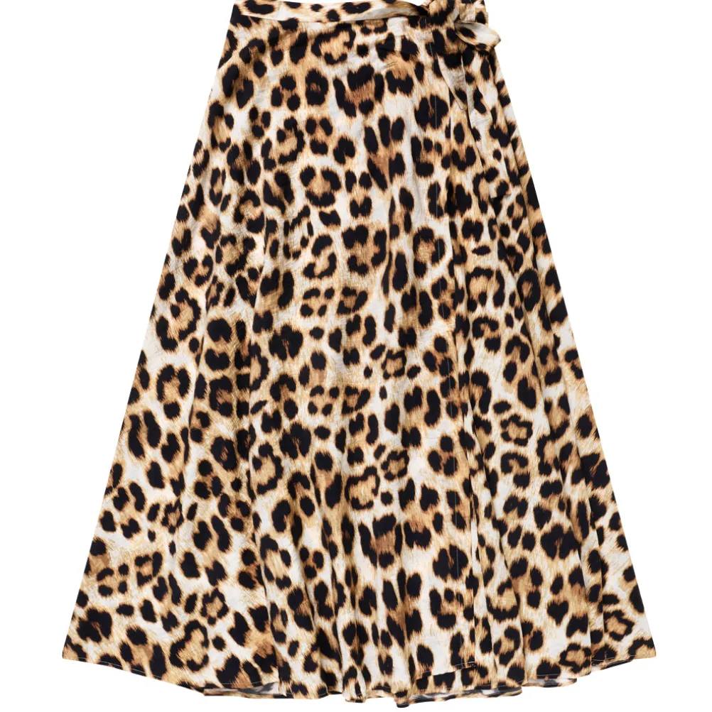 Flot slå-om nederdel med leopardprint fra Munthe med bindebånd i taljen.