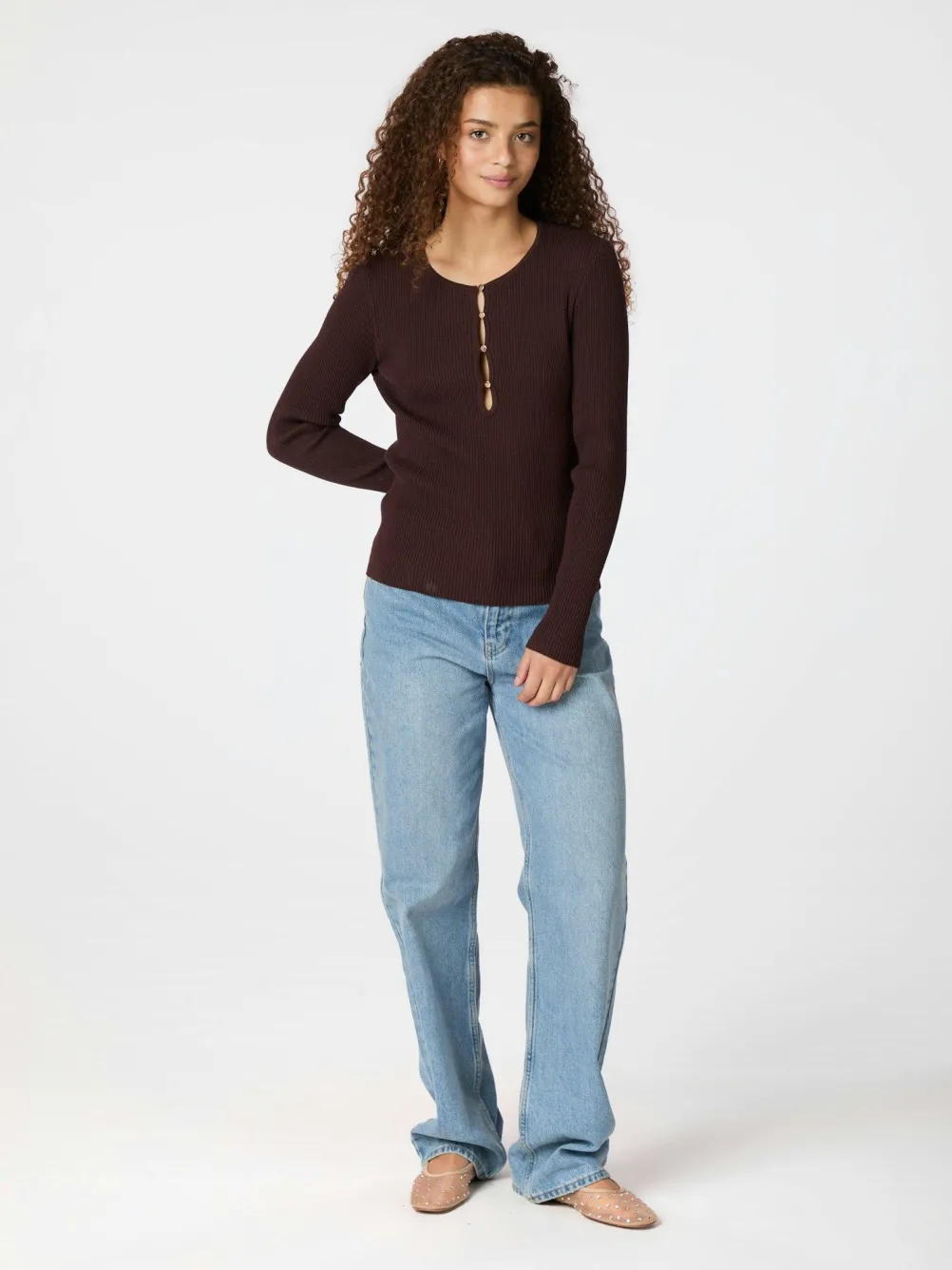 Smuk tætsiddende bluse med udskæring med fine knapper fra Neo Noir.