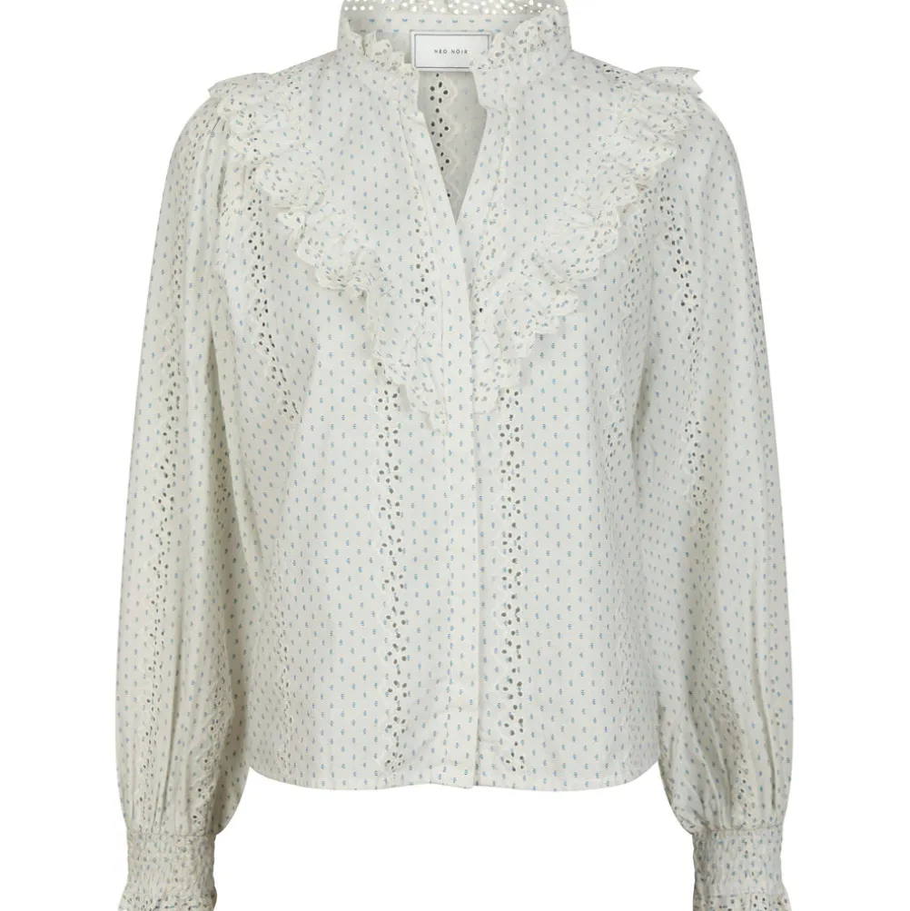 Super sød skjorte fra Neo Noir med flotte flæsedetaljer og blondebånd samt vidde i ærmerne.