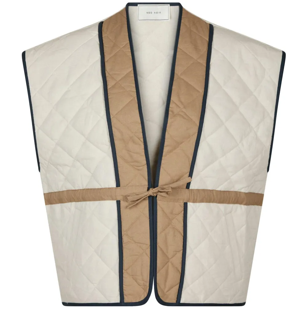 Flot quiltet vest fra Neo Noir med fine farvedetaljer. Med fint bindebånd i taljen.