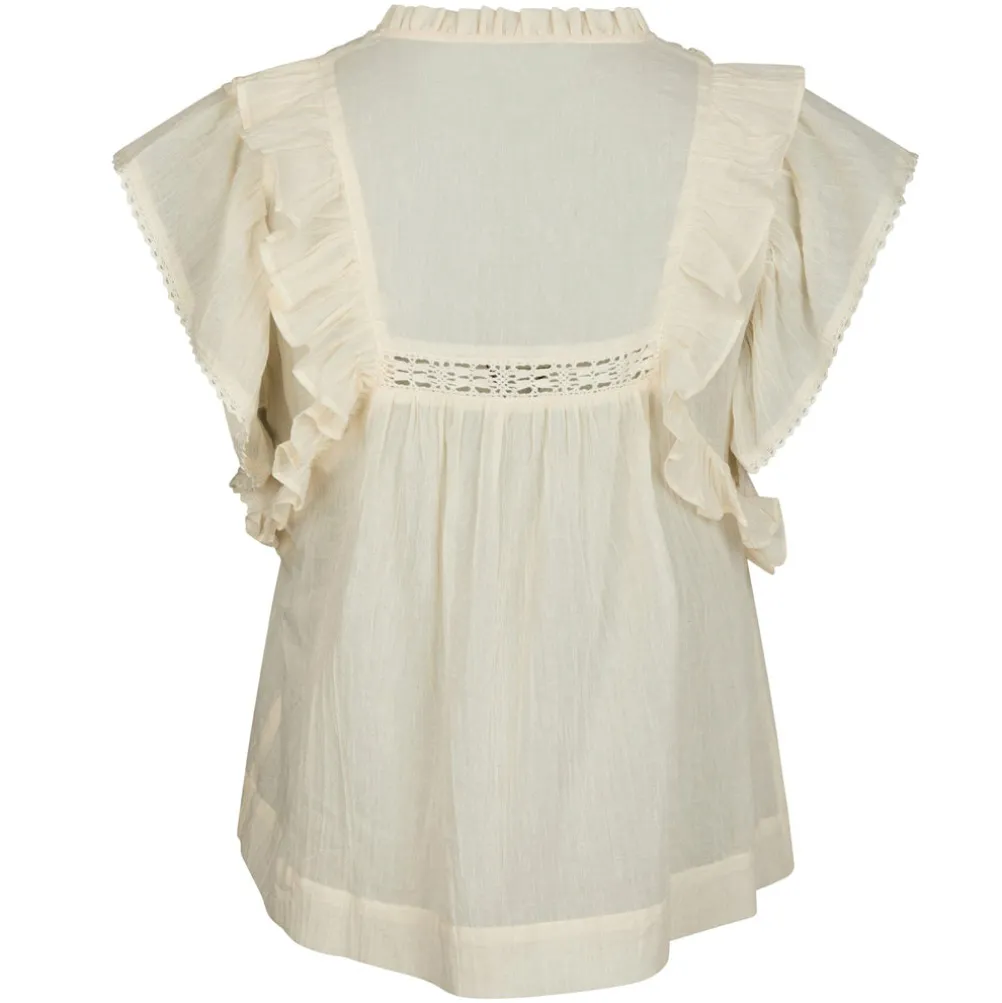 Super sød top fra Neo Noir med fine flæser ved skuldrene og v-udskæring. Med søde blondebond. Perfekt til både hverdag og fest.