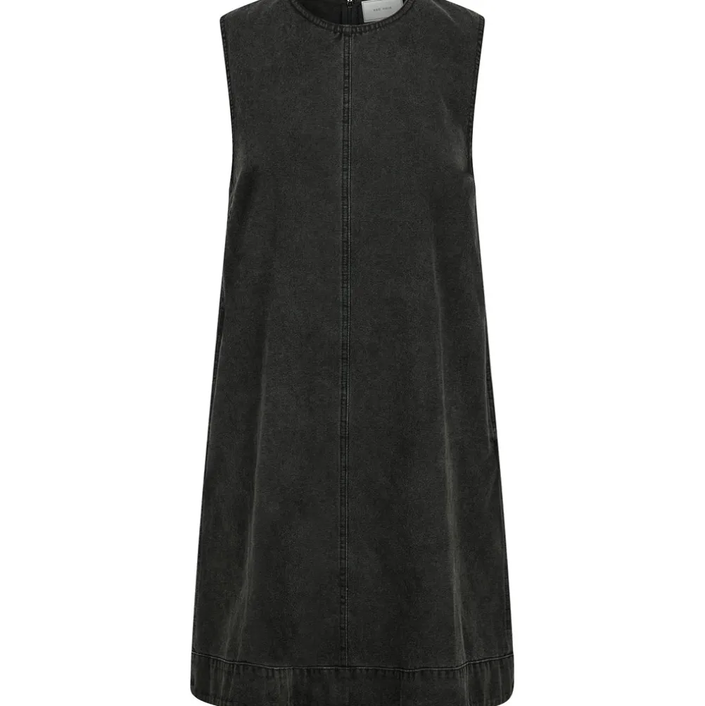 Flot kort a-formet denimkjole fra Neo Noir med rund hals og lynlås i ryggen. Med skjulte lommer i siderne. Fremstillet i en dejlig blød kvalitet.