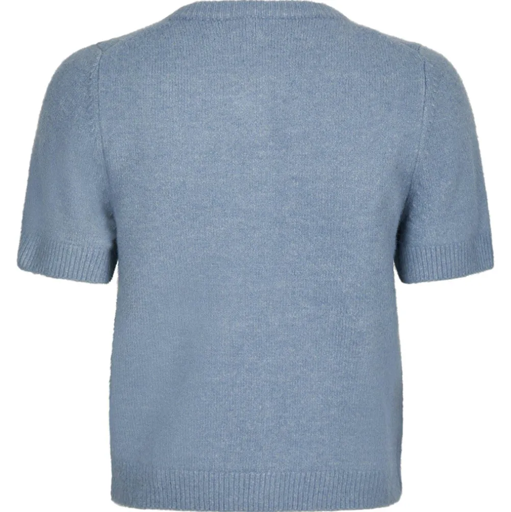 Elegant strik fra Neo Noir med smukke perleknapper. Med korte ærmer. Modellen er iklædt en str. 36.