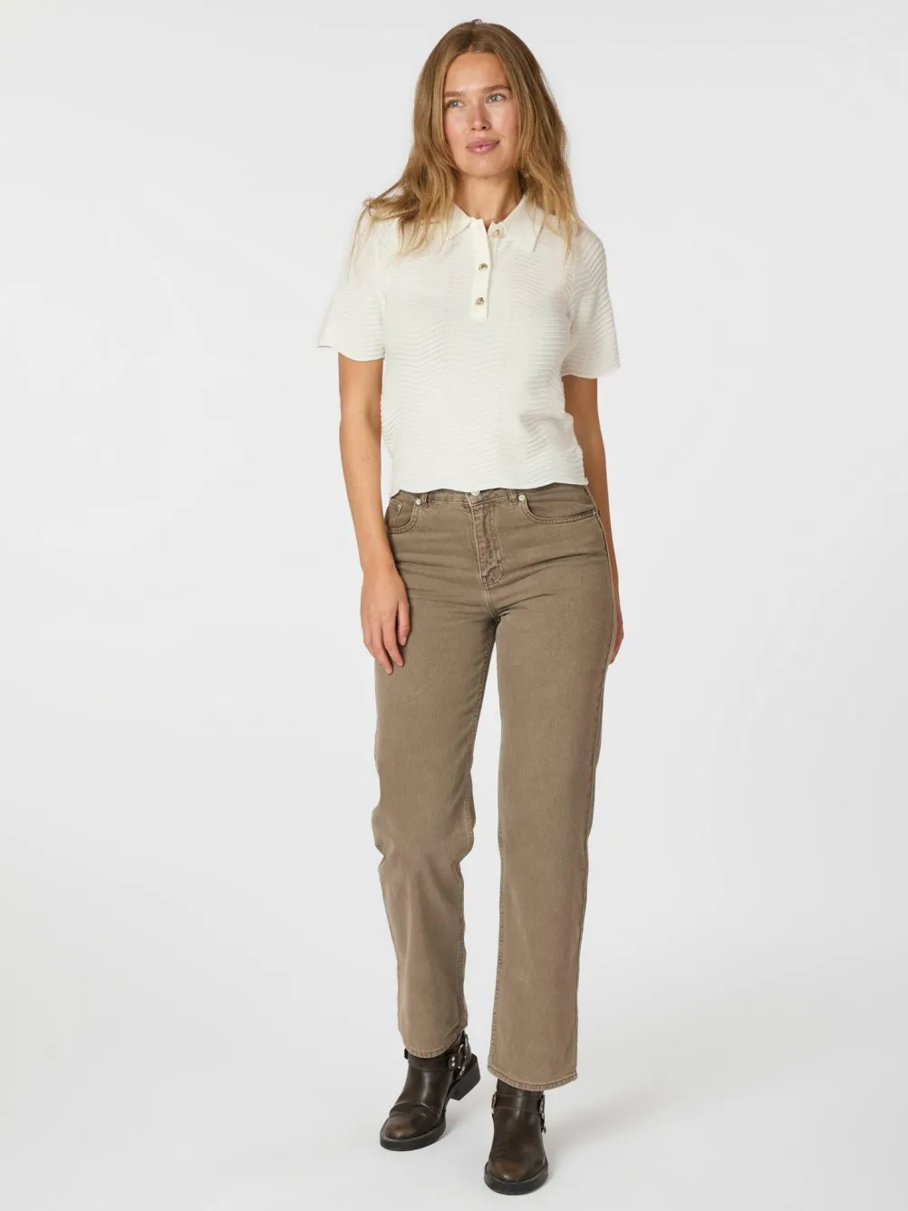 Sød polo t-shirt fra Neo Noir med fine detaljer! Med fine guldknapper, krave og korte ærmer, samt fint bølgende struktur i stoffet.