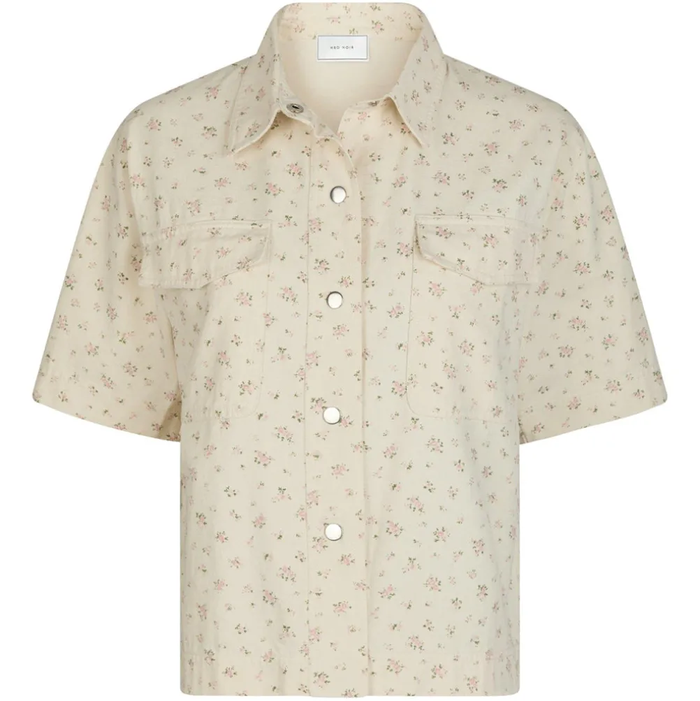 Flot lys denimskjorte fra Neo Noir med fine små blomster. Med cool lommer, knaplukning og brede korte ærmer.