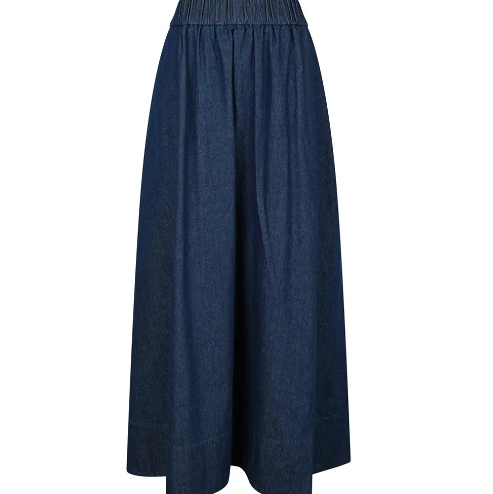 Flot lang nederdel fra Neo Noir lavet i en fin denimkvalitet. Nederdelen har en høj elastik i taljen, lommer og vidde i bunden.