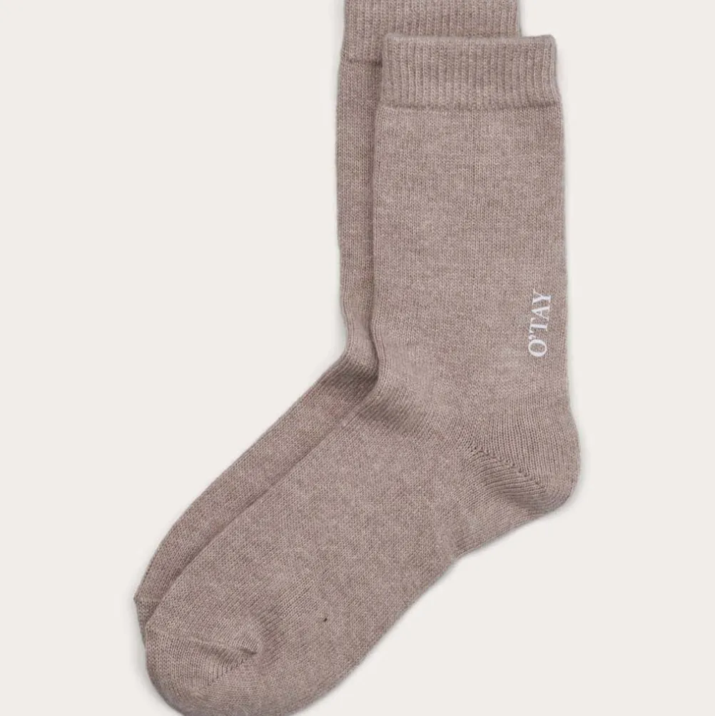 Lækre og luksuriøse strømper i en blød cashmere blanding med O’tays fine logo på siden. Sokkerne kan tåle hverdagsbrug og vask. Sokkerne er onesize og passer str. 36-41.
