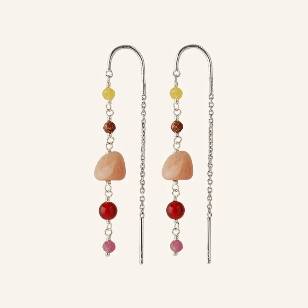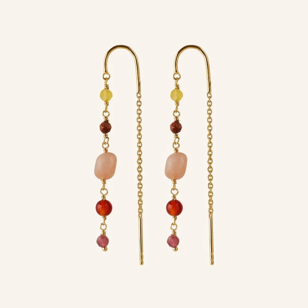 Farve: Guld/sølv / Materiale: Forgyldt certificeret genbrugssølv / Sten: Yellow Quartz, Peach Moon StoneCanelian, Sand Stone, Pink Tourmaline / Længde: 52 mm