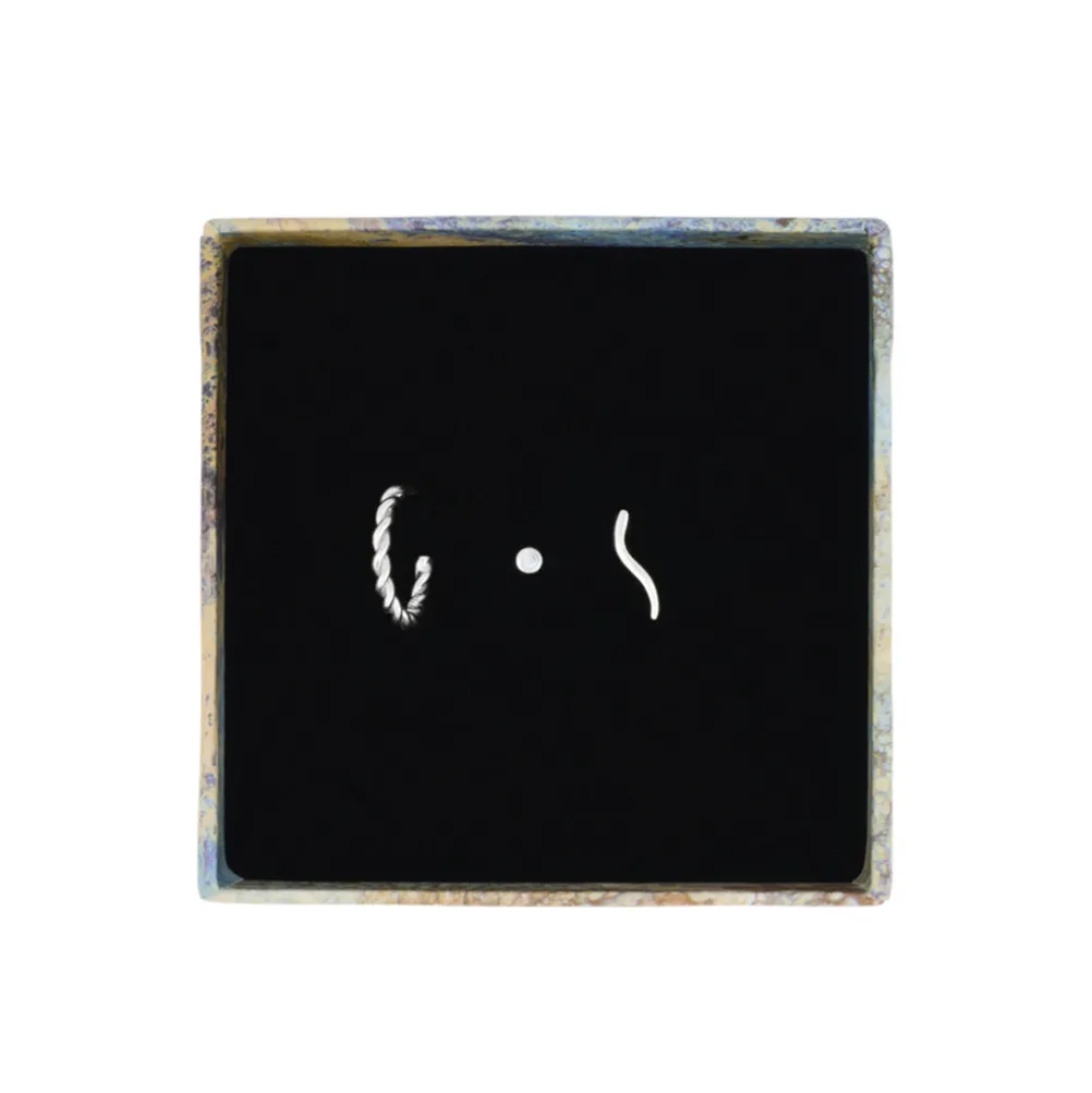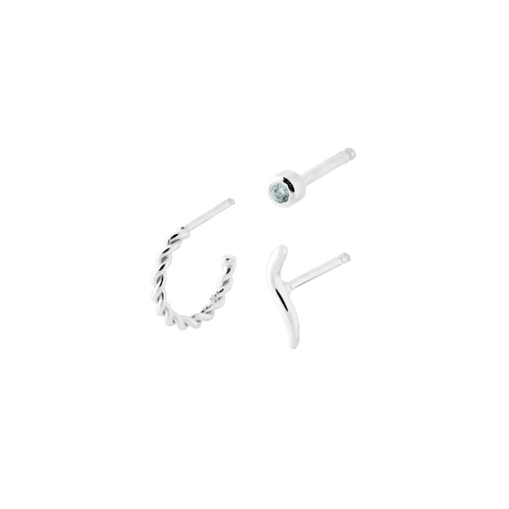 Smukt sæt med tre forskellige øreringe fra Pernille Corydon.