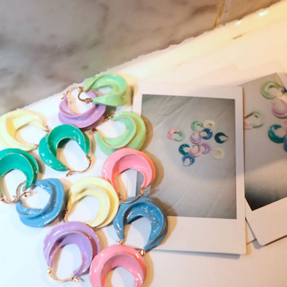 Smukke hoops med farverig emalje fra Pico Copenhagen. Fås i flere farver.