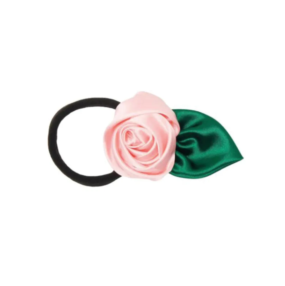 Sød hårelastik med rose og blad fra Pico Copenhagen. Fås i flere farver.