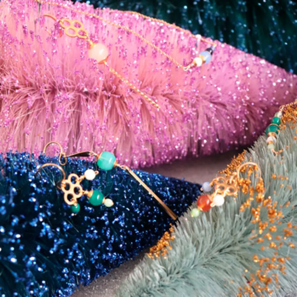 Farve: Rusty / Materiale: 24 karal forgyldt messing, Glasperle / Str: 7,5 cm / Style: PICO COPENHAGEN Corinne Hoop Dark Rusty