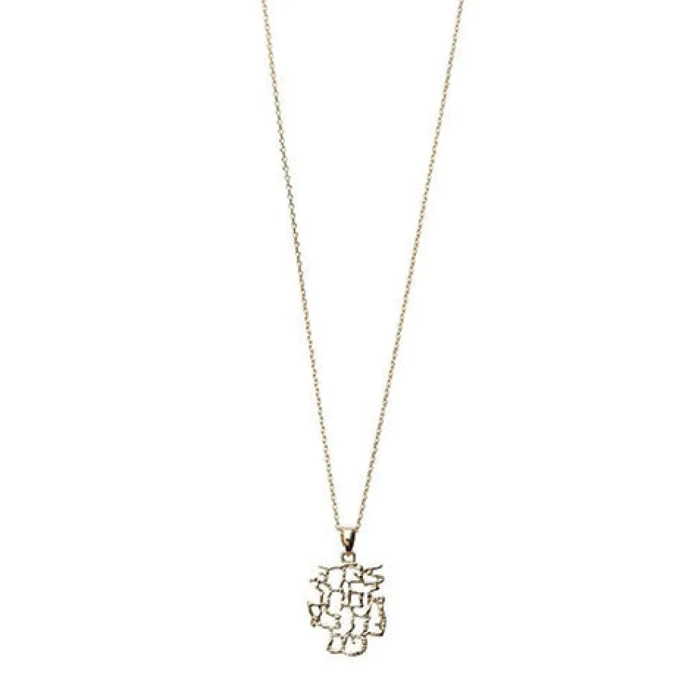 Smuk og abstrakt halskæde fra Pico dog med en skjult tekst i vedhænget. Kan du se det? Kæden er i forgyldt sterlingsølv