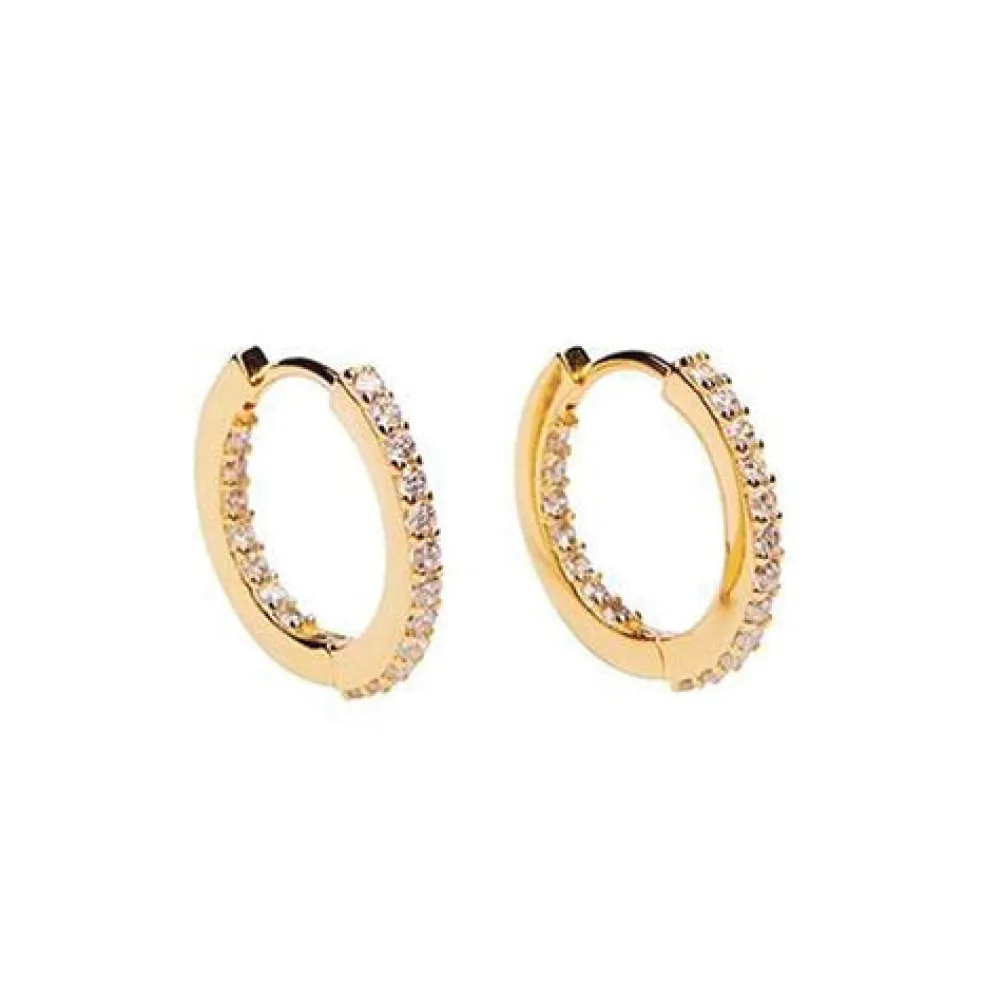 Smukke creoler fra Pico Copenhagen i forgyldt sterlingsølv med klare krystaller på forsiden af øreringen og indeni, hvilket giver en smuk effekt, når du har dem på.